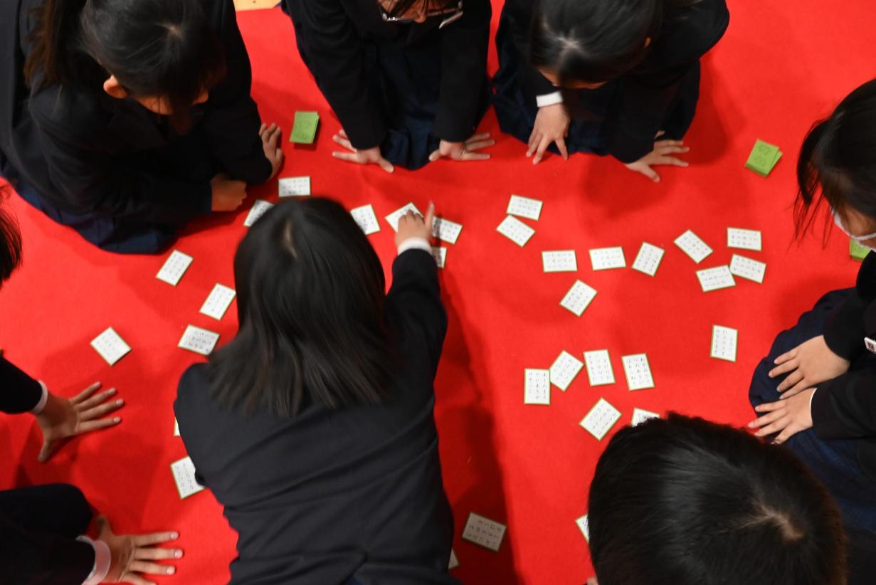 どちらの学年も、国語や総合の時間に予選会を行いクラス対抗で行いました。それぞれの学年の先生が順番に読み手となり、読み札を読み上げると、それぞれのグループから勢いよく取り札を取る声が聞こえてきました。