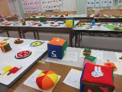 「家庭科の作品です。フエルトを使った丁寧な作品がずらり!」