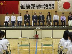 本日、佛山市の中学生と佛山市教育委員会の方々と先生方が本校を訪問され、歓迎会・交流会・授業交流等を行いました。本校2年生の生徒会役員、学級委員の生徒と学年の先生方を中心に準備を進めてきて、当日を迎えました。交流会ではお互いに3つずつ演技等を披露しました。佛山市の中学生は、ピアノ演奏や民族舞踊、武術を披露されました。本校の生徒は、ソーラン節、3部合唱、書道パフォーマンスを披露し、佛山市の先生方も、西中生の演技や歌声にとても感心されていました。午後からの授業交流では、一緒に鶴を折ったり(表面積、求められましたか?)、英語の授業を楽しんでいました。歓迎からお見送りまでの約3時間半はあっという間に感じました。限られた時間でしたが、お互いの文化に触れながらコミュニケーションを取り、とても貴重な体験になりましたね。