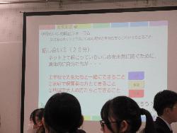 グループ毎に、「SNS等のネット上でのいじめの現状と自分たちでこれからできること」について、討議・意見交流・発表を行いました。西中生も、他校生と一緒にいじめ防止について考え、主体的に意見を発表していました。