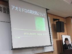 本校からは1年生が選ばれ、「アオミドロの再利用について」の研究成果を、落ち着いてわかりやすく発表していました。本校科学研究部の生徒も参加し、有意義な学び合いの時間となりました。