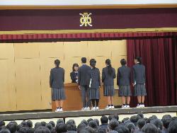 令和7年度後期生徒会本部役員、学級役員の認証式を行いました。