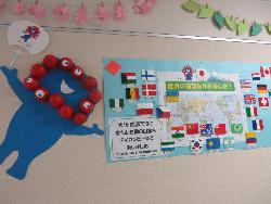 「校内廊下の掲示物です。万博にちなんで自分たちで色々調べ、わかりやすく丁寧に仕上げていました。」