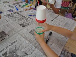 ペットボトルを再利用して、ランタンを作ったり、防災に関するお話をおうかがいしました。