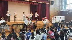 伊丹警察署のご協力を得て、学校に不審者が入ってきたという想定で、防犯訓練を行いました。不審者侵入の放送後、児童は先生の指示に従い、教室の鍵を内側から閉めて待ちました。不審者を先生達が取り押さえ、警察の方が到着したあと、児童は避難することとしています。今回は、体育館に避難しました。あってはならないことですが、いざというときに行動できるよう、必要な訓練です。先生も児童も気を引き締めて訓練を行うことができました。