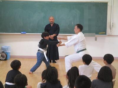 武道を学ぼうの2回目は、「模造刀を振ってみよう」でした。竹刀での練習後、模造刀を振って新聞紙切りに挑戦しました。