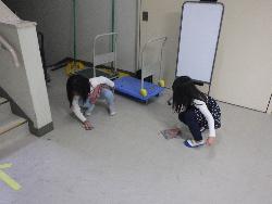 体育館をのぞいてみると全4年生が集合。今から始まるのはボッチャです。それぞれのゾーンに分かれ、床に置かれた得点のシートめがけてボールを投げて、得点を競い合います。お手玉を少し大きく、球体にしたボールを手に投げてころがしていきますが、なかかうまくころがって得点ゾーンに入ってくれません。さて、思い通りに投げることができるようになったかな?
