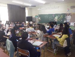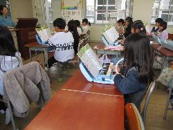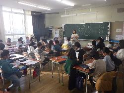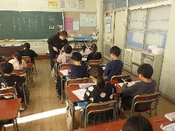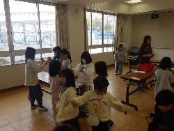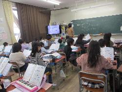 2年生の教室では、3クラスとも鍵盤ハーモニカを練習していました。曲は「アイアイ」音を鳴らすことは上手くできていましたが、休符の所に苦戦していました。先生に「うんうん」と休む合図を教えてもらって、少しずつ上達していました。いい音色が出ていました。