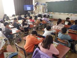 4年生の教室をのぞいてみると、同じく国語。こちらは、「もしものときにそなえよう」ということで、災害の際、何を準備しておけば良いのか、自分の考えが相手に伝わるように書く学習を行っていました。限られたスペースに書くためには、大切なことは何かを精選する必要があります。色々と調べたことを元に各自がしっかりと自分の考えをまとめていましたよ。