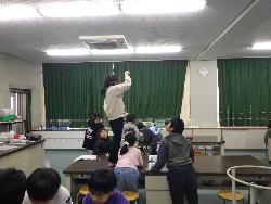 そして理科室では5年生が何かを巻いています。学習内容は「電流と電磁石」。つまり、エナメル線を巻いて電磁石をつくっていたのでした。他の実験と違って、実験キットを使って、作っていく過程がなかなか楽しい。最終的には「フットサルロボ」ができるようです。どうすればうまく動くのか、考えながら作っていくのが楽しいですね。