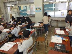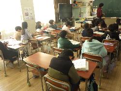 一方で、4年生の教室をのぞいてみると、社会科の学習中。「郷土を開く」という単元です。伊丹といえば、行基さん。そして、昆陽池です。まずは、昆陽池の広さについてみんなで考えていました。600㎢なのか20㎢なのか・・・算数では面積について、アールやヘクタール、㎢について学習しているので、算数ともからませながら考えていました。ちなみに、昆陽池公園の面積は約27.8ヘクタールだそうです。この池を作った行基さん、すごいですね。