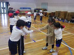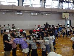 一方、業間には体育館で室内委員会によるイベントがありました。1,2年生を対象に「じゃんけん列車」です。じゃんけんすることだけでなく、みんながつながって「ゆらゆら」というか「くねくね」とい動く感覚が楽しいのでしょうか。音楽が止まり「じゃんけんポーン」大いに盛り上がり、その後はみんなニコニコしながら列車になっていました。