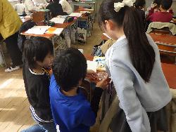 さて、2年生の教室では算数の学習中。この時期は「図形」を学習している学年が多く、2年生では6つの面をはりあわせて「箱」を作ります。さいころだったら6つ全て同じ形ですが、細長い形の箱であれば、隣り合わせになる形が決まってきます。さて、隣り合う形を合わせながらうまく箱を作ることができたかな?