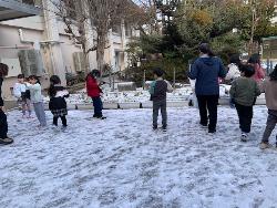 阪神間には珍しい大雪でした。今朝は雪の中のグランドで元気に遊ぶ児童の声が聞こえてきました。2年の体育の時間は、雪投げをしてウォーミングアップしていました。