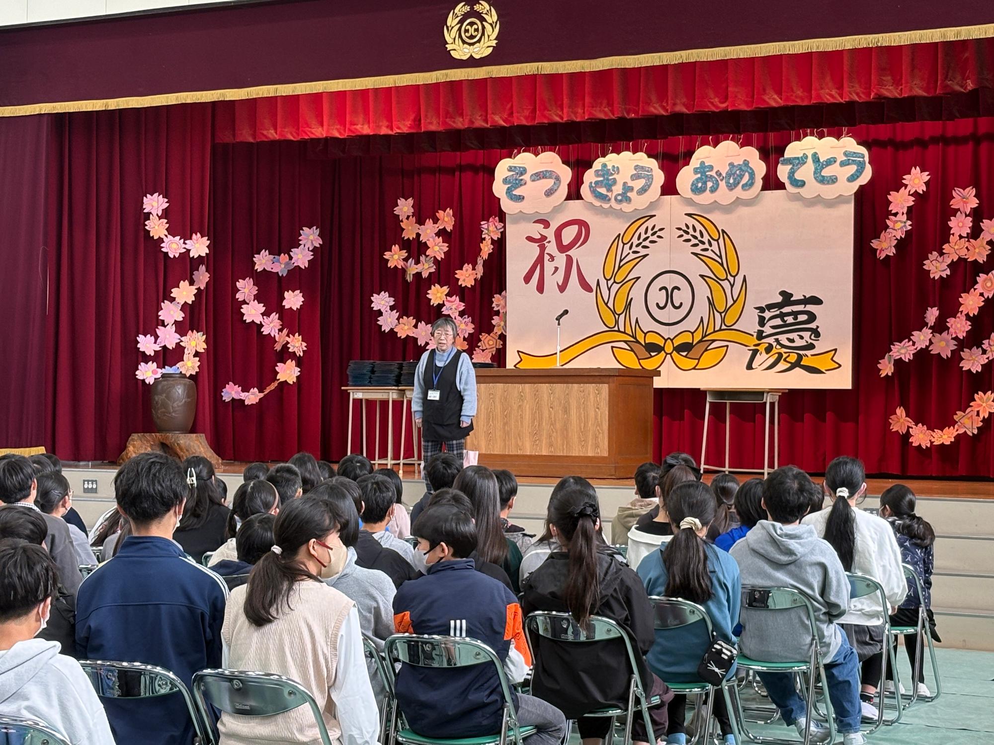 各学年代表の児童が6年生にお手紙を読みました。