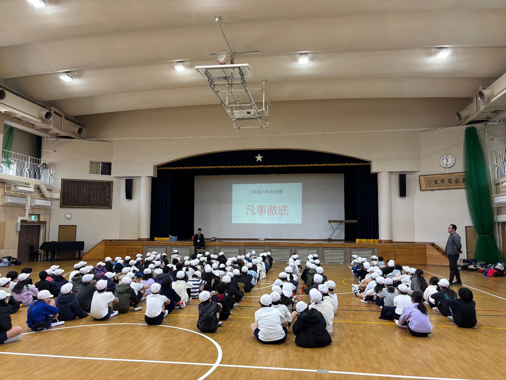 5年生は、1月9日(金曜)に3学期最初の学年集会をしました。3か月後の最高学年に向けて、もう一度全員が「当たり前のことを当たり前にする」を徹底しようということで『凡事徹底』を掲げ、共通認識しました。今の6年生が安心して卒業できるように3学期も頑張っていこうと思います。