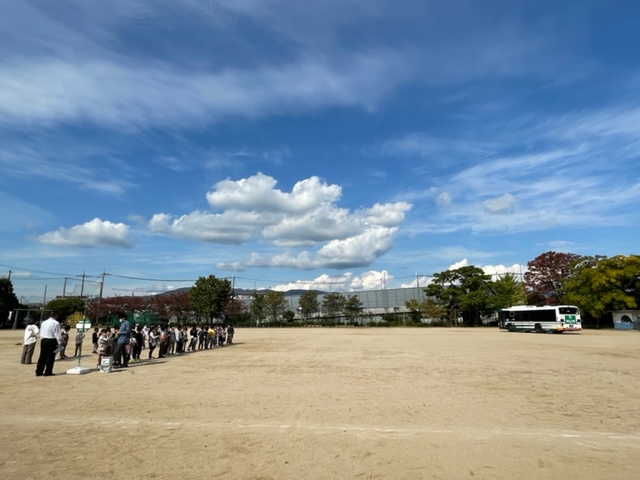 3、4校時を使って、伊丹市交通局の方が1年生に出前授業をしてくださいました。本物の市バスも、運動場にやって来てくれました。バス乗車の際のマナー、お金の払い方、停車ボタン体験など、伊丹市での生活に欠かせない乗り物のことを実際に体験して学べました。