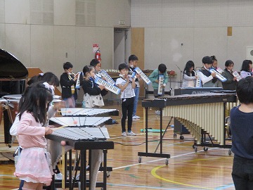 リコーダー、鍵盤ハーモニカ、打楽器のと、それぞれに練習をした後に音合わせです。