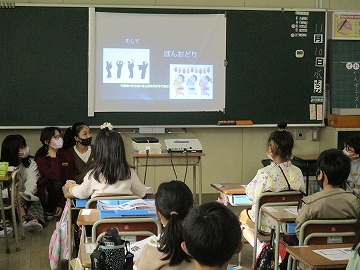 4年生は、太鼓の音に合わせて手拍子で表現していました。