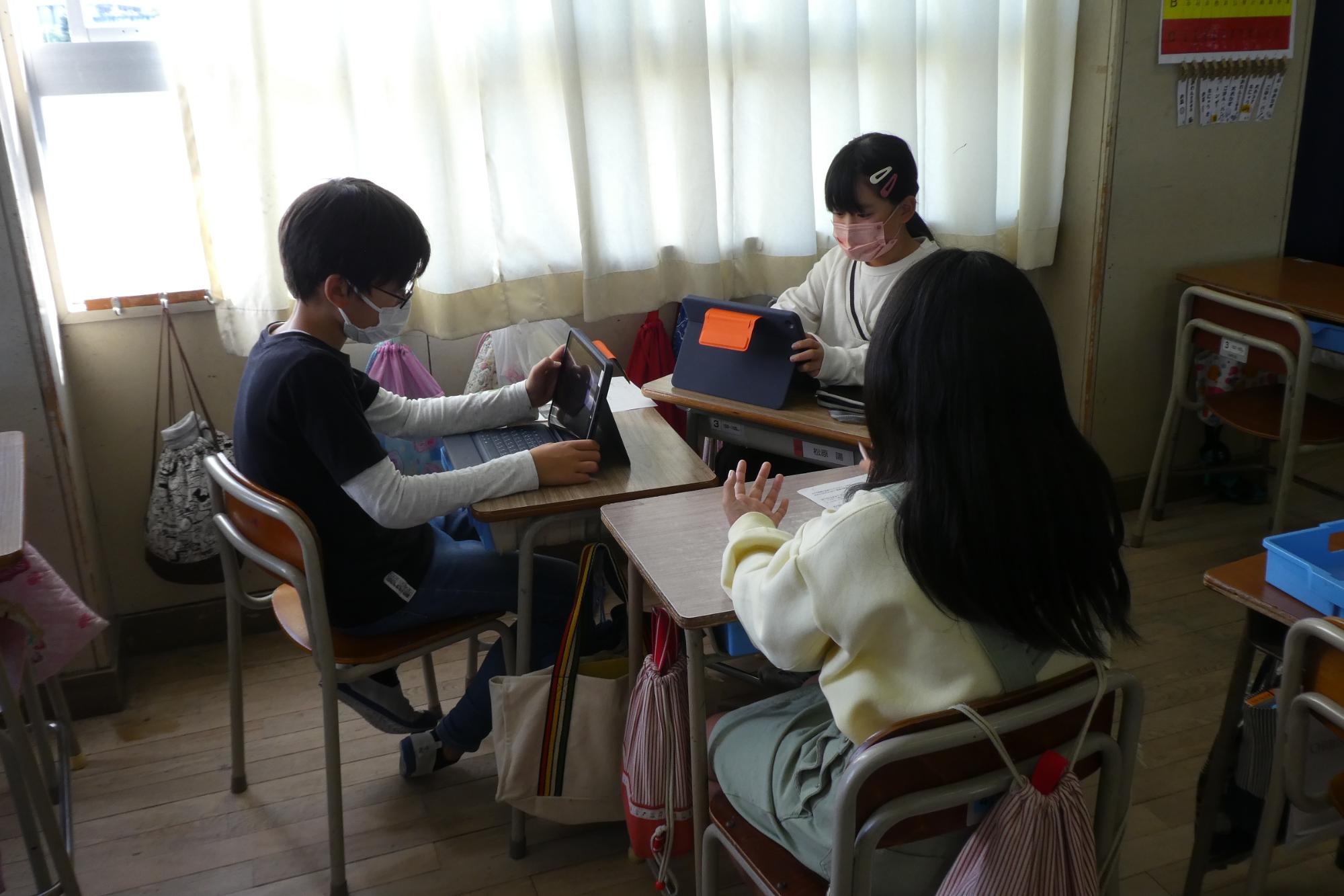 各自のタブレットに、グループでの話あったことを記録していきます