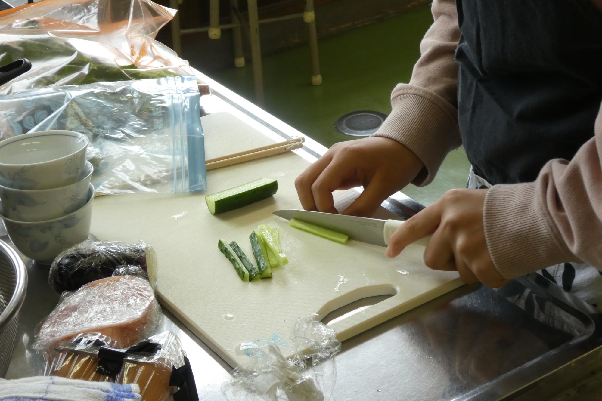 まずは野菜切り。手を切らないよう気をつけて