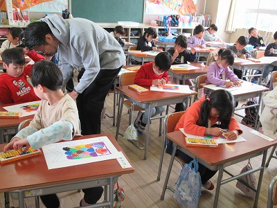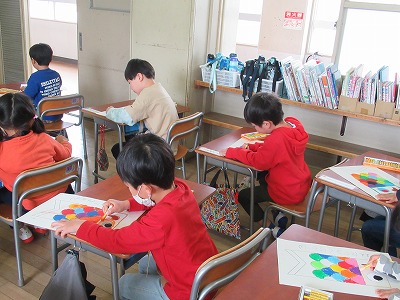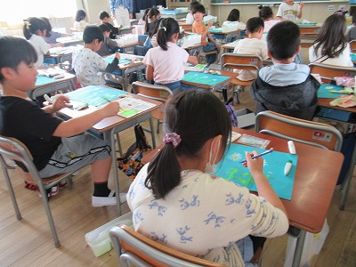 3時間目にのぞいてみると、下書きの絵に上手に色を塗っていました。