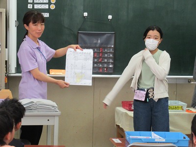 今日から約4週間、教員をめざす3人の大学生が本校で実習に励んでいます。1年生のクラスと4年生、そして保健室で先生になるための勉強をします。最初に各学年各学級の様子を見て回りました。