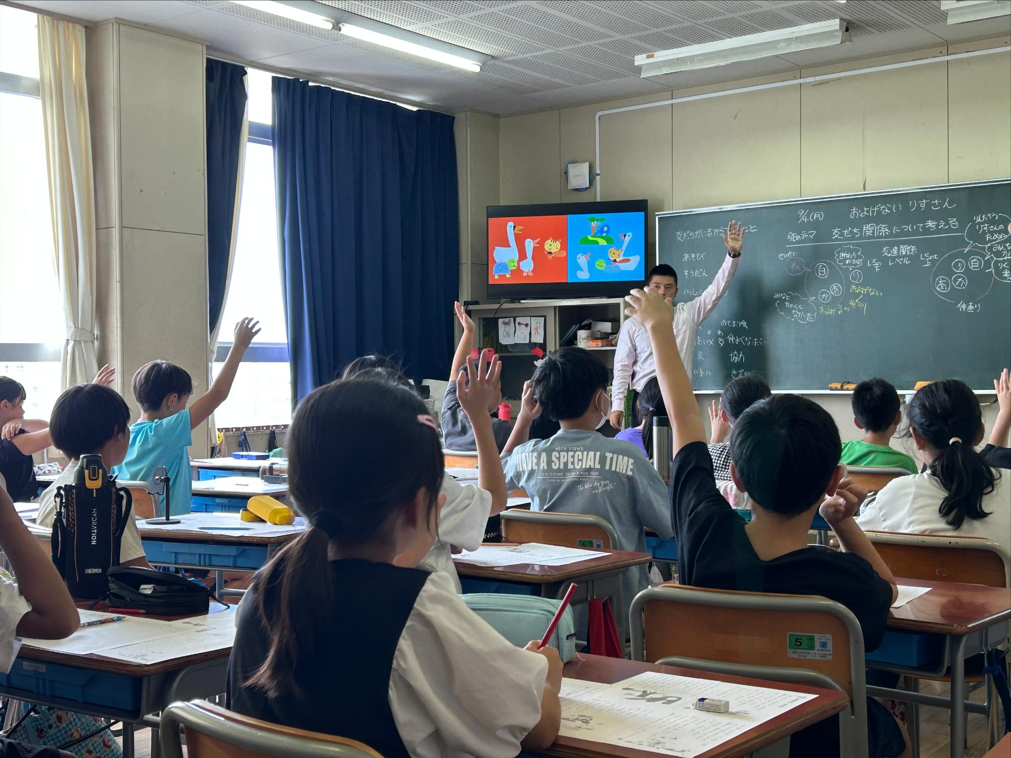 国語科「どちらを選びますか」の学習で、今日は、「未来」と「過去」について子どもたちが立場を明確にしながら議論をしていました。