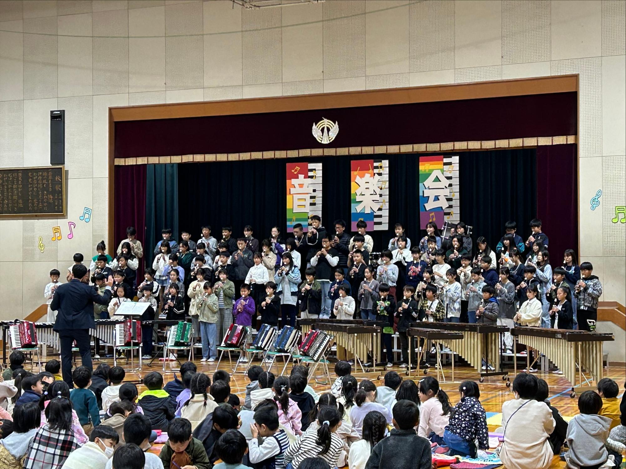 今日の午前中は、各学年の演奏を聴き合う「児童鑑賞日」でした。全児童が一堂に会するスタイルは本当に久しぶりです。幼稚園の子どもたちも応援に駆けつけ、金管バンドの演奏も加わり、みんなで音楽を楽しむ素敵な時間になりました。
