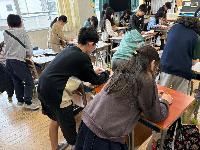 3学期の家庭科では、ミシンの使い方を学習中です。