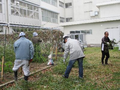畑ボランティア「笹を使った霜よけづくり」