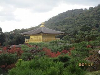 輝く金閣の姿を、遠目から、側から、上からなど、いろいろな場所から見学しました。金閣の屋根の上の鳳凰をしっかり見ている子もいました。