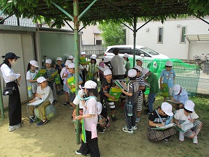 今日は暑い中での実施だったので、途中の休憩ではしっかりと水分補給。そして見てきたことを忘れないうちにメモしています。
