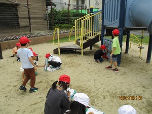 2年生は生活科で町探検をしています。摂陽小学校区自治協議会会長様をはじめ、地域のたくさんの方にサポートいただき、安全に実施することができました。ありがとうございました。今日は堤ヶ内公園と泉公園・さんかく公園を回りました。地域で生活している人や働いている人々、場所に関心を持ち、人々と関わりながら生活していることがわかりました。
