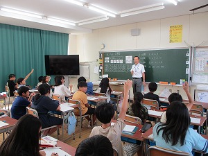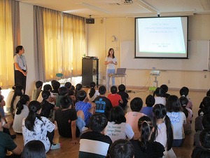 「いのちについて考える 小児がんの子どもをもったお母さんの話」をチャイルド・ケモ・ハウスから講師の先生を招いて特別授業を行いました。お母さんの経験から「あたりまえの生活を大切に」「できないこともたくさんあるけど、できることもたくさんある」「生きている人がしあわせと思える社会をつくること」そんな言葉が心に響きました。学校生活ではいろいろ傷つくこともあるかもしれないけど、今しか出来ないことを大切に友だちと絆を深めてほしい。子どもたちも真剣にそして、共感しながらお話を聞いていました。