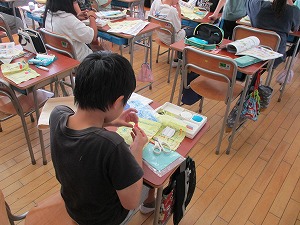 家庭科の裁縫の時間の様子です。今日はボタン付けにチャレンジしました。玉どめ、玉結びがしっかり出来ても、ボタンが落ちないように巻き付ける作業に苦戦していましたが、自分たちでできるようになってきていますが支援が必要です。ボランティアも随時募集しておりますのでよろしくお願いいたします。