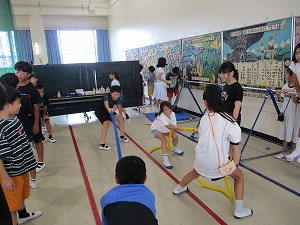 運動会が午前中開催になり、綱引きや玉入れなど運動会の伝統競技が実施されなくなりました。子どもたちに力を合わせみんなで達成する経験をさせてやりたいと先生たちの願いが体育委員会活動として実現することになりました。今日は12年生の競技です。56年生の体育委員も率先して取り組む充実した活動となりました。