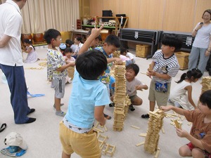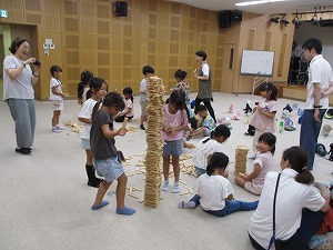 1年生がふらっと(児童館)へ施設見学に行きました。カプラをしたり、施設の説明を受けたりして楽しい時間をすごしました。カプラでどこまで高く積むことができるか競い合っていました。