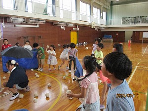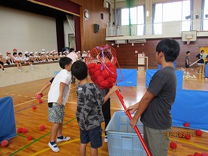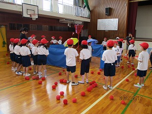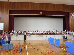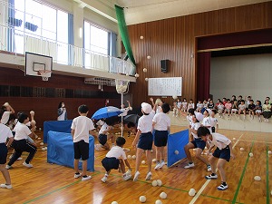 「体育委員会」もがんばっています。先週に引き続き今週は中学年の玉入れです・中学年の児童のほとんどが業間に玉入れを楽しみました。体育のイベントも充実してきました。来週は高学年の玉入れがあります。