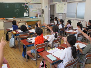 新出漢字を先生と元気よく確認していました。今日は「算」「活」などを学習していました。下足前に2年生の2学期の目標が貼ってありました。漢字をたくさん覚えると書いていた児童もたくさんいて、みんな意欲的に取り組んでいました。