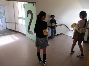 校内の事故を防ぎやルールを守るために「保健委員会」が頑張って活動してくれています。運動場、体育倉庫、下足廊下、教室廊下など見回り子どもの視点で安全でないところをチェックしてくれています。毎月教師で安全点検を行っていますが、児童がいる時間に子どもたちで見守ることにより、自身の過ごし方を考えるきっかけにもなっています。自主的に動ける児童もいるようで、高学年としての自覚と責任を感じます。