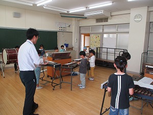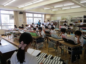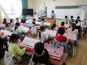 音楽会まであと1ヶ月。こちらは音楽会のパート練習風景です。特別楽器は生活室で、鍵盤ハーモニカは2組教室に分かれて練習しました。これからがんばります。