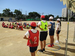1校時運動場で全校体育を行いました。前回と同様時間通りに開始することができました。ご家庭でもご協力いただいていることがよくわかります。余裕をもって登校し落ち着いて行動することができていました。体育大会まで「あと1週間」今が一番しんどい時期だとおもいますが、先生も子どもたちも全力で取り組んでいます。