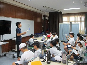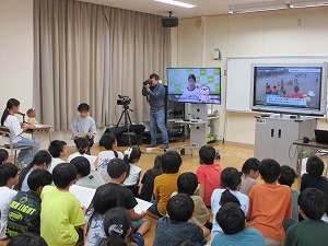 ニュースとは政治、事件、くらし、スポーツなどみんなに知ってほしいことをテレビ局が選んで放送していること、放送局によって「今日のトップニュース」がちがっていることも学習しました。どうやってニュースを作っているのかをわかりやすく教えていただきました。「1本のニュースを作るのにいろんな人がいろんな立場で関わっているそうです。記者として大切にしていることは人の気持ちがわかる記者でいること、勝手に思い込まないこと。一人でできることは限られているのでチームワークで仕事をするように心がけているそうです。