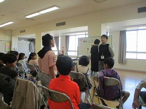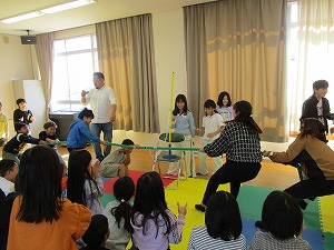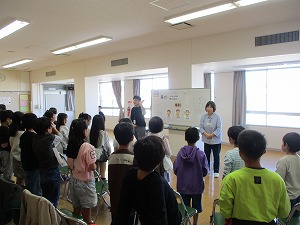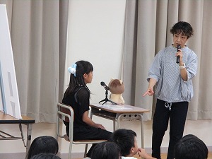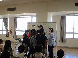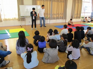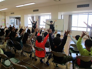 「どんなときが安心しますか」の質問で、「家でお母さんのそばにいるとき」、「ご飯を食べているとき」、「おふろにはいっているとき」、「ともだちと話しているとき」など答えていました。子どもたちの安心が大きくふくらむともっといい笑顔が見られると思いました。劇を通して大切なことをたくさん教えていただきました。