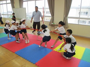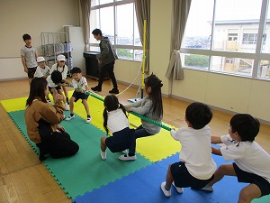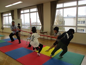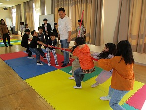 1年生対決ですがとても見応えがありました。体制を低くしながら粘り強く引いたチームが優勢です。さて優勝はどのちーむでしょう。おうちで聞いてあげてください。