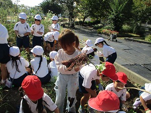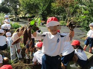 今日は1年生のいもほりがありました。例年よりは少し不作かもしれませんが、大きないももみることができました。11月のおいもパーティが楽しみです。