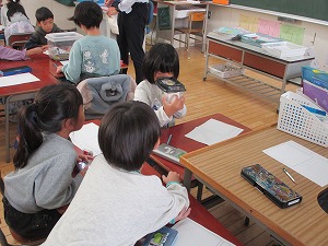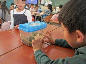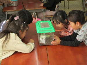 五感を働かせて、生活科で捕まえた昆虫たちをよく観察しながら、様子を表す言葉をみんなで出し合う時間でした。生き物を見たり触ったりしながら、気付いたことや思ったことを上手に表現できたらいいね。おうちからリンゴを持ってきたり、毎日畑に行ってすみかの材料を集めたりと只今1年生は「昆虫ブーム」です。