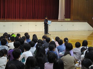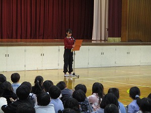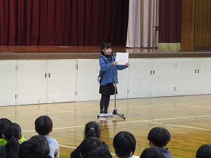 朝に全校朝礼を行いました。体育大会では学年1つになり、最後までやり遂げることができました。よくがんばりました。次は音楽会です。気持ちを新たにがんばりましょう。自由研究や俳句など活躍した児童に表彰状を渡しました。