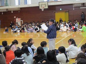 2学期の仲間作り集会がありました。1年生の先生から人前で作文を発表することは大変なことですごく緊張していましたが、発表をすることで自信をつけたようで何事も前向きに考え、動けるようになりました。みんなで「仲間」について考え、「仲間づくり」のために自分ができることを話し合いました。